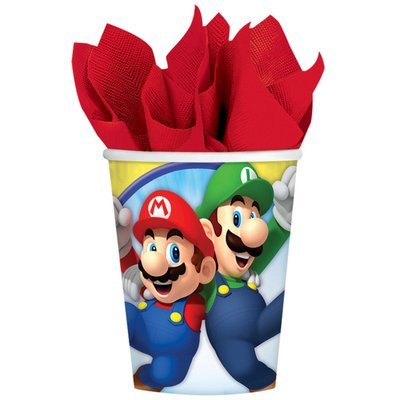IRPot - COORDINATO COMPLEANNO N.7 SUPER MARIO RUN + PIATTI BICCHIERI TOVAGLIOLI ROSSI