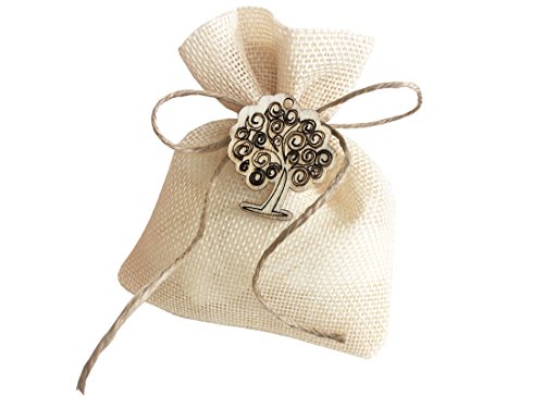 IRPot - 24 Sacchetti Beige 768X835 + 24 Decorazioni Legno + Rotolo Juta + BIGLIETTINI (Albero della Vita L1663)