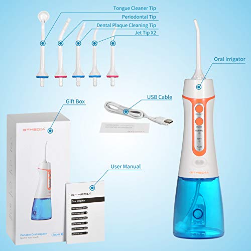 [3 modalità di irrigazione orale da 300 ml] Sono disponibili 3 modalità in grado di soddisfare le diverse esigenze delle persone. La modalità normale pulisce a fondo le gengive e lo spazio tra i denti. La modalità morbida è adatta alla persona che utilizza il nostro irrigatore orale per la prima volta per adattarsi lentamente al nostro irrigatore orale ed evitare sanguinamento gengivale sensibile. Inoltre, la nostra modalità pulsata massaggia le gengive e aiuta a migliorare la salute orale.