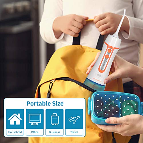 [Batteria al litio ricaricabile USB da 1200 mAh] L'irrigatore orale cordless è dotato di una batteria al litio da 1200 mAh. Dopo aver caricato questo irrigatore orale per 4 ore, puoi usarlo per circa 75 volte. Il design senza fili e alimentato a batteria è altamente portatile per brevi viaggi.