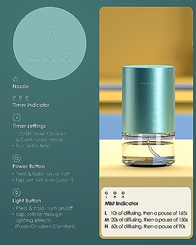 Diffusore di oli essenziali senz'acqua. Il sistema brevettato di diffusione senza acqua converte direttamente la tua selezione preferita di olio essenziale in "nebbia a livello nano" senza utilizzare calore o acqua. Rispetto ai tradizionali diffusori a ultrasuoni, questo è più originale, semplice e sicuro da usare