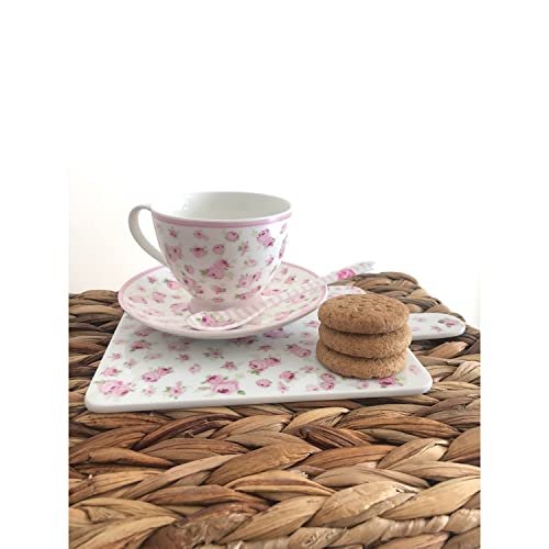 Cucchiaino da caffè in porcellana collezione Tiny con disegno floreale e righe rosa. Porta lo stile Shabby chic a tavola, una scelta perfetta per una pausa caffè, da abbinare alla tazza o zuccheriera o per gustare un dessert.