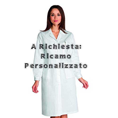 ISACCO Camice Medicale da Donna Bianco - 100% Cotone - Marca Italiana - Modello Femminile Sciancrato con Tre Tasche e Bottoni con asola, Tessuto Fresco e Resistente, Perfetto per Il Lavoro (M)