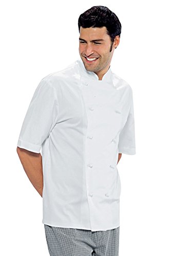 Isacco Giacca Cuoco Classica Bianco, Bianco, S, 100% Cotone, Mezza Manica, Bottoni antipanico - Tessuto 210 gr/m²