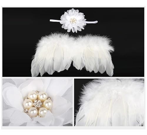 ISAKEN Baby Photoshoot Costume Oggetti di Scena, Ali di Angelo di Piume con Abiti per la Fascia, Ali di Angelo di Piume Bambino Fotografia con Fascia per Capelli, Costume per Foto di Neonati