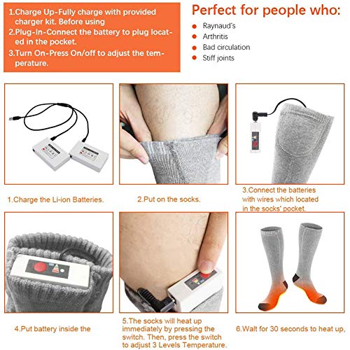 Materiali: calzini riscaldati selezionati materiale di cotone di alta qualità, forte e caldo, forte permeabilità allaria, comodo da indossare, molto resistente.
