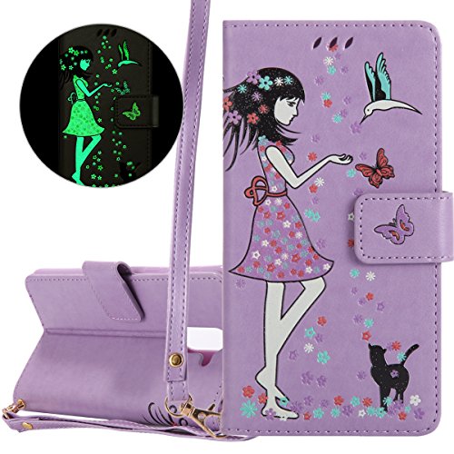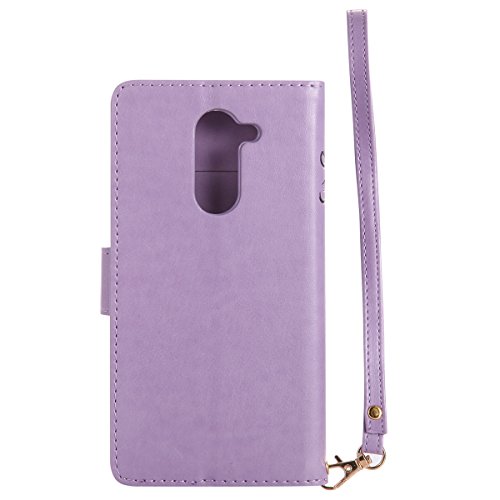 ISAKEN Compatibile con Huawei Honor 6X Custodia, Libro Agganciabile Luminosa Case PU Pelle Portafoglio Cover con Lampeggiante Wallet Flip Caso con Supporto di Stand/Carte Slot, Viola Chiaro