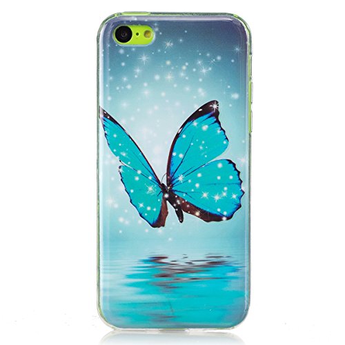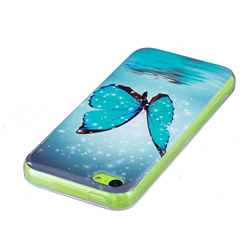 ISAKEN Compatibile con iPhone 5C Custodia, Agganciabile Luminosa Cover Case con Lampeggiante Ultra Sottile Morbido TPU Cover Rigida Gel Silicone Protettivo Custodia - Glitter Farfalle