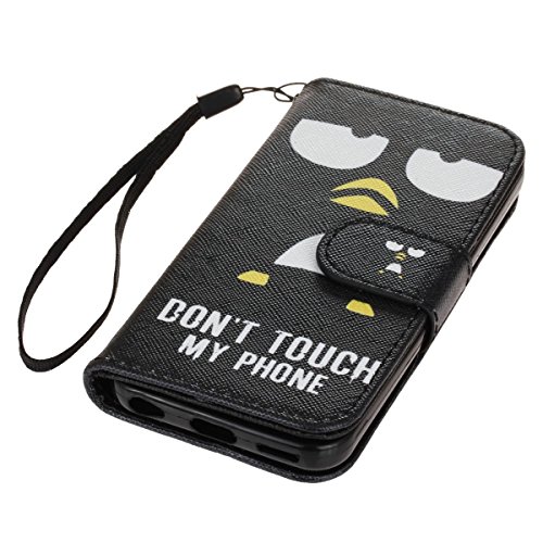 ISAKEN Compatibile con iPhone 5C Custodia Cover [PU Pelle] [Shock-Absorption]con Strap, Libro Portafoglio Design PU Leather Cover con Credit Card Slot Flip Protettivo Stand Copertura - Penguin