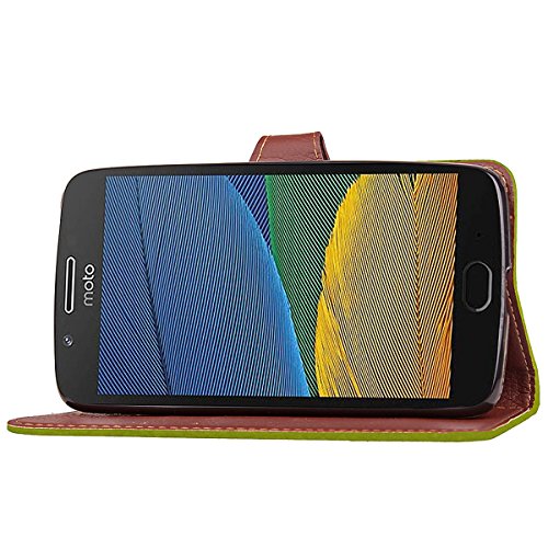 ISAKEN Compatibile con Lenovo Moto G5 Plus Cover - Libro Foglia Custodia in Pelle PU Protettiva Flip Portafoglio Rigida Case Wallet Cover con Supporto di Stand/Strap/Carte Slot/Chiusura - Verde