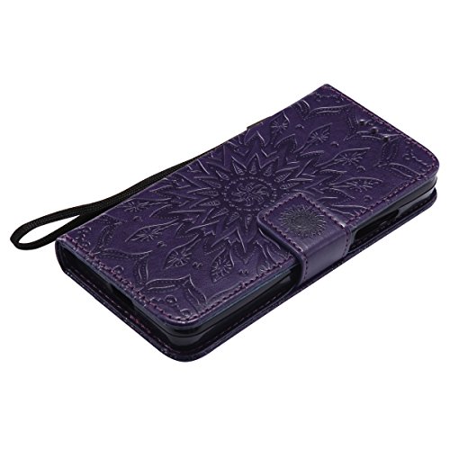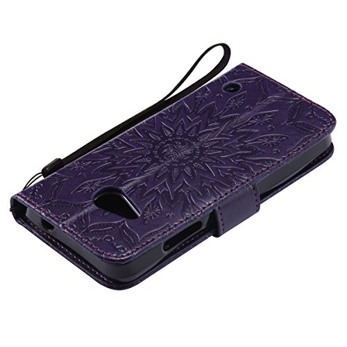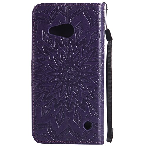 ISAKEN Compatibile con Microsoft Lumia 550 Custodia[PU Pelle] [Shock-Absorption], Libro Flip Cover Portafoglio Case Tinta Unita Caso con Supporto di Stand/Carte Slot/Magnetica - Girasole: Violet