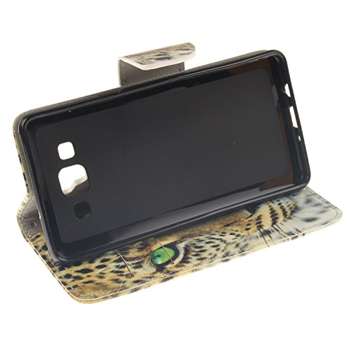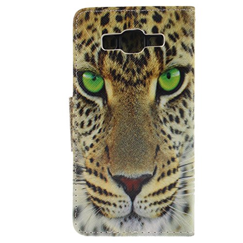ISAKEN Compatibile con Samsung Galaxy A3 2015 Custodia, Creative Libro Portafoglio Custodia PU Cuoio Leather Cover Flip Rigida Wallet Copertina Wallet Caso con Funzione di Supporto - Tiger Head