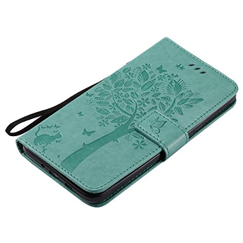 ISAKEN compatibile con Samsung Galaxy J7 2016 Custodia, Libro Flip Cover Portafoglio Wallet Case Albero Design in Pelle PU Protezione Caso con Supporto di Stand/Carte Slot/Chiusura - verde
