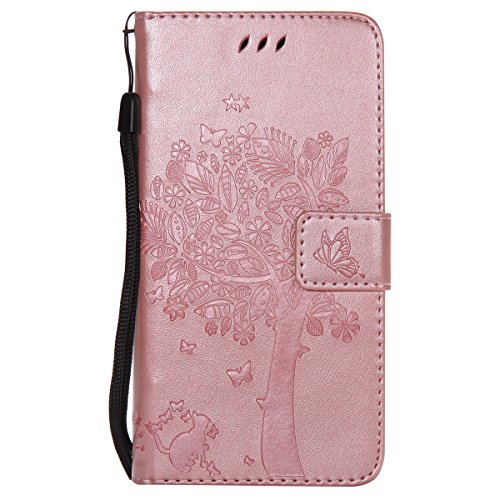 ISAKEN compatibile con Samsung Galaxy J5 2017 Custodia, Libro Flip Cover Portafoglio Wallet Case Albero Design in Pelle PU Protezione Caso con Supporto di Stand/Carte Slot/Chiusura - rose gold
