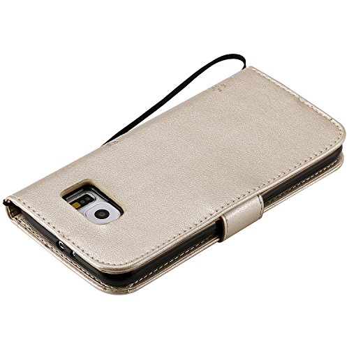 ISAKEN Compatibile con Samsung Galaxy S6 Custodia, Libro Flip Cover Portafoglio Wallet Case Albero Design in Pelle PU Protezione Caso con Supporto di Stand/Carte Slot/Chiusura - Gold
