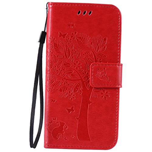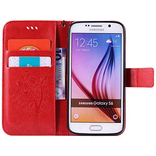ISAKEN Compatibile con Samsung Galaxy S6 Edge Plus Custodia, Libro Flip Cover Portafoglio Wallet Case Albero Design in Pelle PU Protezione Caso con Supporto di Stand/Carte Slot/Chiusura - Rossa