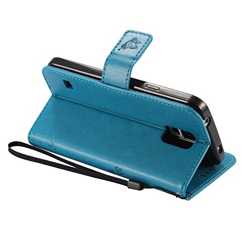 ISAKEN Compatibile con Samsung Galaxy S5 Mini Custodia, Libro Flip Cover Portafoglio Wallet Case Albero Design in Pelle PU Protezione Caso con Supporto di Stand/Carte Slot/Chiusura - Blu