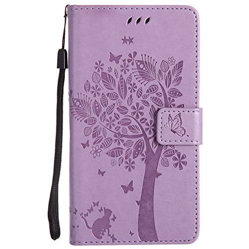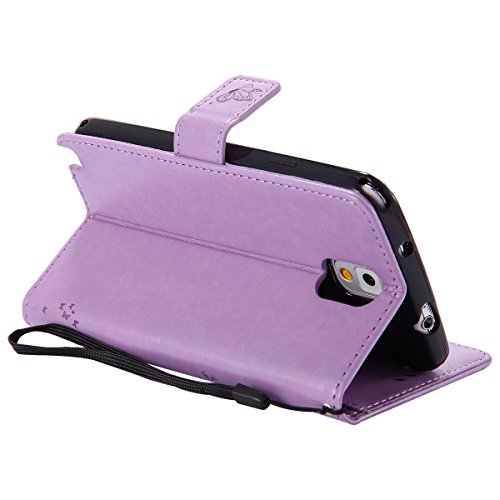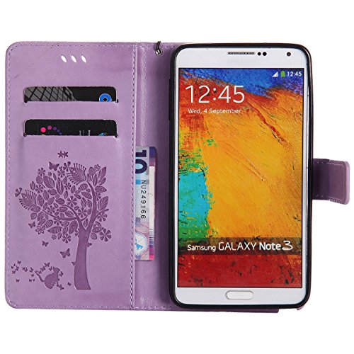 ISAKEN Compatibile con Samsung Galaxy Note 3 Custodia, Libro Flip Cover Portafoglio Wallet Case Albero Design in Pelle PU Protezione Caso con Supporto di Stand/Carte Slot/Chiusura - Viola Chiaro