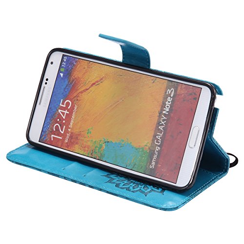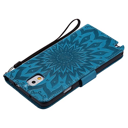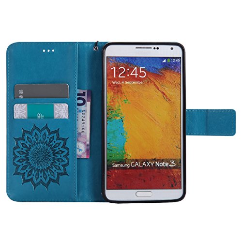 ISAKEN Compatibile con Samsung Galaxy Note 3 Custodia[PU Pelle] [Shock-Absorption], Libro Flip Cover Portafoglio Case Tinta Unita Caso con Supporto di Stand/Carte Slot/Magnetica - Girasole: Blu