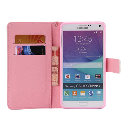 ISAKEN Compatibile con Samsung Galaxy Note 4 Custodia in Pelle PU Protettiva Flip Portafoglio Caso con Strap/Supporto di Stand/Carte Slot/Chiusura Magnetica- Albero Rossa