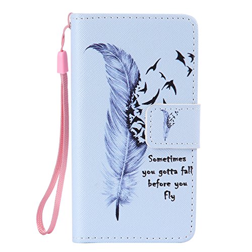 ISAKEN Cover Compatibile con Samsung Galaxy A3 2015 Custodia in Pelle PU Libro Portafoglio Cover Wallet Flip Caso con Strap/Supporto di Stand/Carte Slot/Chiusura Magnetica - Piuma Uccelli