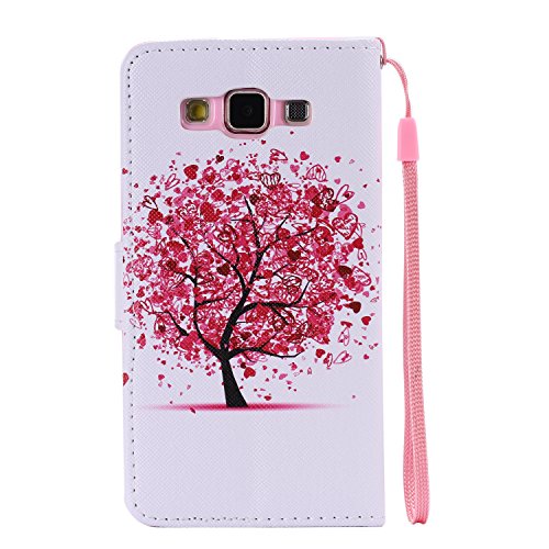 ISAKEN Cover Compatibile con Samsung Galaxy A5 2015 Custodia in Pelle PU Libro Portafoglio Cover Wallet Flip Caso con Strap/Supporto di Stand/Carte Slot/Chiusura Magnetica - Albero Rossa