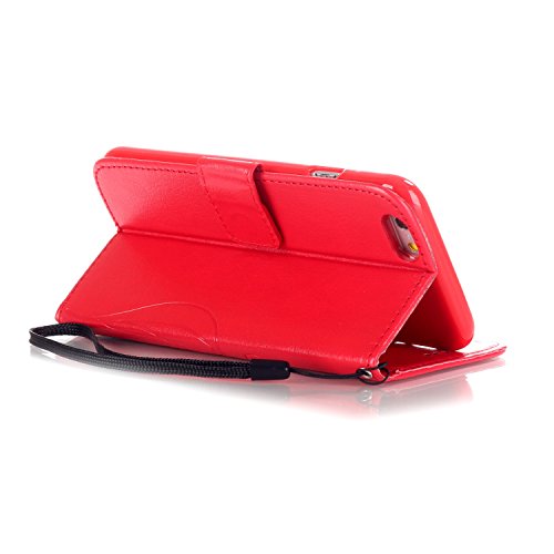 ISAKEN Custodia compatibile con iPhone 6 /iPhone 6S Flip Cover Wallet Cover Fiori Design in Pelle PU Case Cover Flip Portafoglio Case Cover con Supporto di Stand/Carte Slot - Flower: rossa