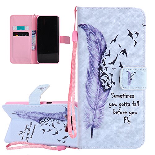 ISAKEN Custodia Cover Compatibile con Samsung Galaxy S8 Plus,Bookstyle Flip Caso in PU Pelle Protettiva Portafoglio Wallet Caso con Supporto di Stand/Carte Slot/Strap/Magnetica - Piuma Uccelli