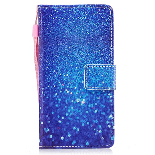ISAKEN Custodia Galaxy J7 2016, Flip Cover per Samsung Galaxy J7 2016 Flip Caso PU Pelle Protettiva Portafoglio Wallet Case Cover con Supporto di Stand/Carte Slot - Goccia di Pioggia Blu