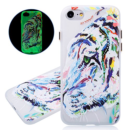 ISAKEN Custodia iPhone 7 - Cover iPhone 8 - Fashion Agganciabile Luminosa Cover Denso Case con LED Lampeggiante per Apple iPhone 7 /8 4.7"Ultra Slim Sottile TPU Cover Rigida Gel Silicone Protettivo Skin Custodia Colorate Pattern Style Protettiva Shell Case Cover - Tigre head