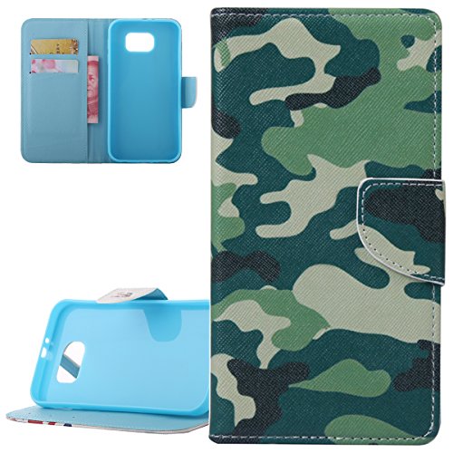 ISAKEN Custodia Samsung Galaxy S7 Edge, Samsung Galaxy S7 Edge Cover, Custodia in Pelle Protettiva Flip Portafoglio Case con Supporto di Stand/Carte Slot/Chiusura Magnetica - Camouflage Verde
