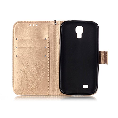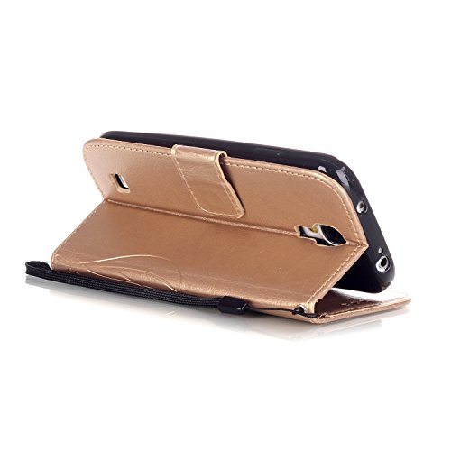 ISAKEN Custodia per Samsung Galaxy S4 Mini con Strap Libro Tinta Unita PU Pelle Flip Cover Portafoglio Case Wallet Caso con Supporto di Stand/Carte Slot/Chiusura Magnetica - Oro