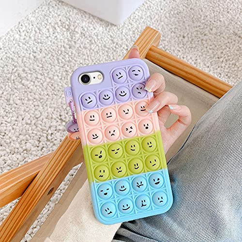 ISAKEN Custodia per Telefono in Silicone per iPhone 6/7/8/SE 2020, Decompressione Custodia Morbida con Giocattoli Pop Fidget con Bolle sensoriali -Multicolore
