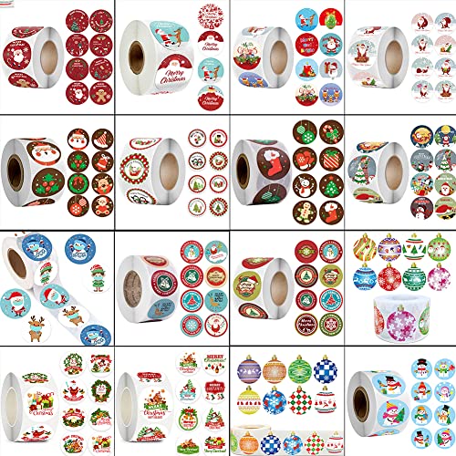 ISAKEN 500 Pezzi Adesivi Natalizi Rotolo, Rotonde Sticker Rotoli, Etichette Adesive Natale Rotolo, Adesivi Decorativi per Pacchetti Pacchi Regalo