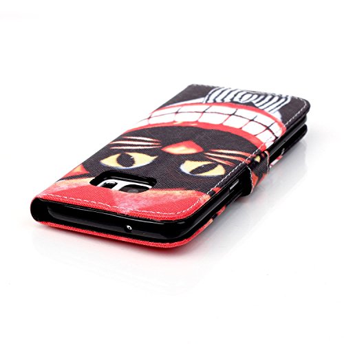 ISAKEN Samsung Galaxy S7 Edge Custodia, Samsung Galaxy S7 Edge Cover, Elegante borsa Printing Drawing Design Pattern Custodia in PU Pelle Protettiva Flip Portafoglio Case Cover per Galaxy S7 Edge / con Supporto di Stand / Carte Slot / Chiusura Magnetica - cartoon gatto
