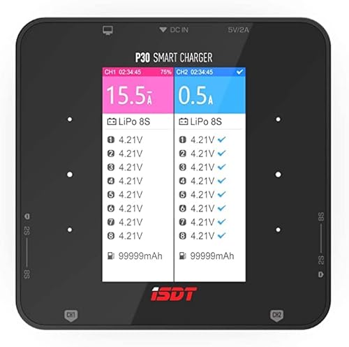 ISDT P30 Smart Lipo Caricatore 1000 W x 2 30 A x 2 caricabatterie Bluetooth a doppio canale, scaricatore, caricatore rapido RC per Life, Lilon, LiPo 1~8S, LiHv 1-7S, Pb 1-12S, NiMH, Cd 1-16S