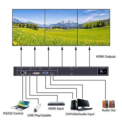 ISEEVY 6 Channel Video Wall Controller 2x3 3x2 HDMI DVI VGA USB Video Processor with RS232 Control for 6 TV Splicing