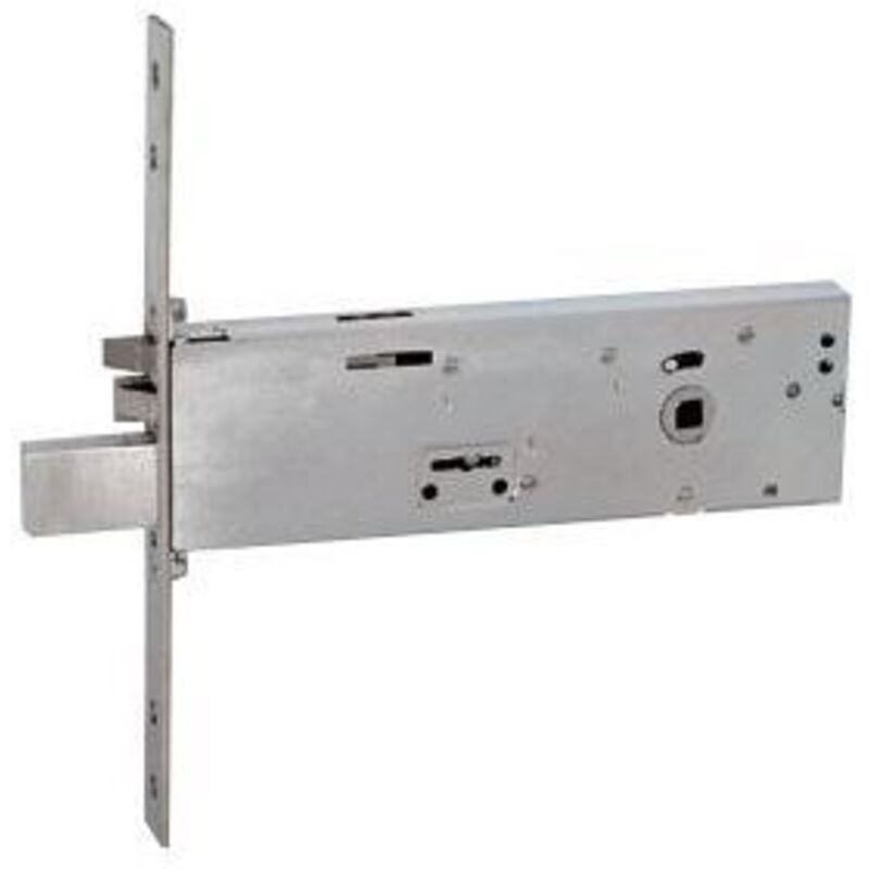 Per fasce - Chiave a doppia mappa - Per serramenti in alluminio - Chiusura laterale - Frontale inox - 4 mandate Tensione 12 Volt CA Misura 90 mm. Dimensione 206x64 mm. Frontale 22x3 mm.
