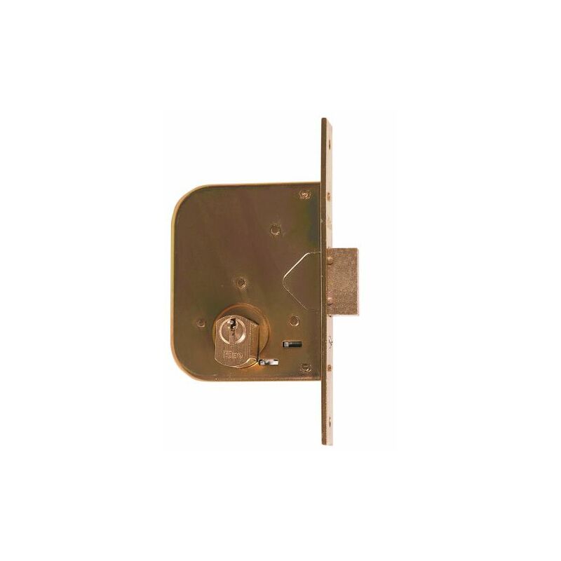 Serratura da infilare. 2 mandate, con cilindro, 3 chiavi, in acciaio tropicalizzato, scatola mm. 83x105.