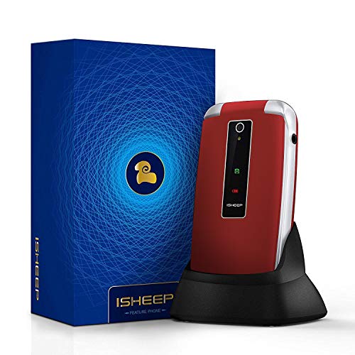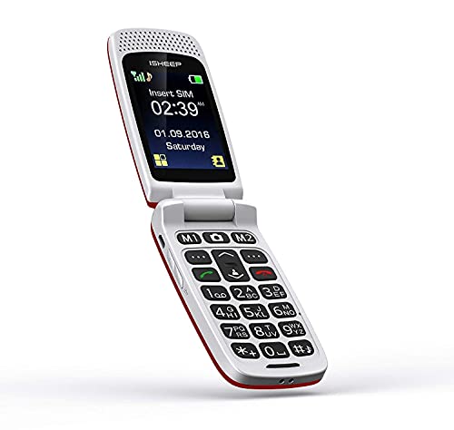 ISHEEP Telefono Cellulare e conchiglia per anziani con LCD display, base di ricarica, Torcia, Tasti Grandi, Funzione SOS, Volume Alto. Nero (SF213+)
