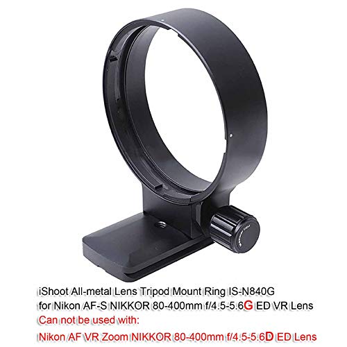 IShoot - Anello di montaggio per treppiede per Nikon AF-S NIKKOR 80-400 mm F/4.5-5.6G ED VR Teleobiettivo zoom, con piastra a sgancio rapido da 65 mm e foro per vite da 1/4 e 3/8