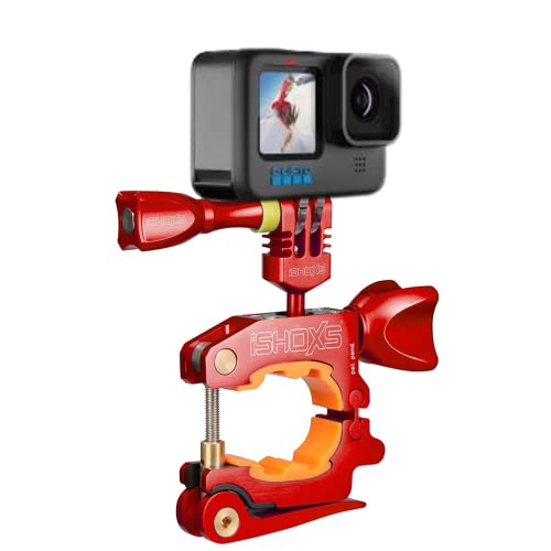 ISHOXS ProMount, supporto per GoPro in alluminio fresato con CNC dotato di chiusura rapida a leva con eccentrico, ampia zona di serraggio, resistente alla torsione con GearBoxx - rosso
