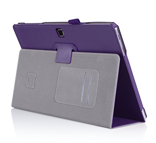 ISIN Custodia Tablet Serie Premium Pelle PU Stand Cover per Samsung Galaxy TabPro S 12 Pollici SM-W700 W703 W708 Windows 10 2-in-1 Laptop Tablet con Cinturinoi in Velcro e Slot per Schede (Viola)