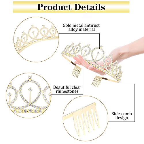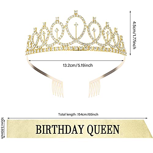 ISIYINER Compleanno Corona Tiara e Sash, Strass Corona Diadema con Satin Sash Compleanno Copricapo Decorazioni per Ragazze Donna Feste di Compleanno (Oro)