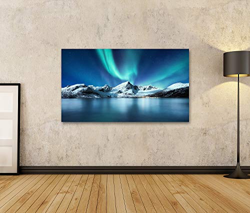 Islandburner Quadro su tela Aurora Boreale Isole Lofoten Norvegia Luci del Nord Montagne Riflessione Acqua Winte Quadri Stampe Immagini Murale Decorazione da parete