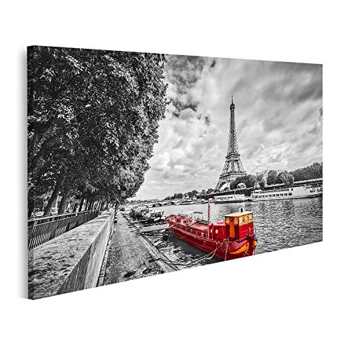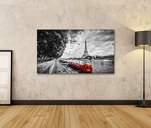 Islandburner Quadro su tela Torre Eiffel sulla Senna Parigi Francia Vintage Rosso Nave Turistica Acqua S Quadri Stampe Immagini Murale Decorazione da parete