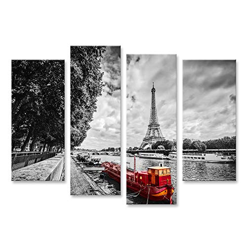 Islandburner Quadro su tela Torre Eiffel sopra bianco nero rosso d'annata della nave turistica della nave della Senna Parigi Francia Stampa Foto Quadri Moderni