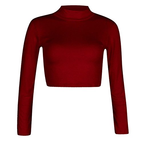 Islander Fashions Womens Manica Lunga Polo Turtle Neck Crop Top Ladies Plain Fancy Party Short Top S/M, M/L
