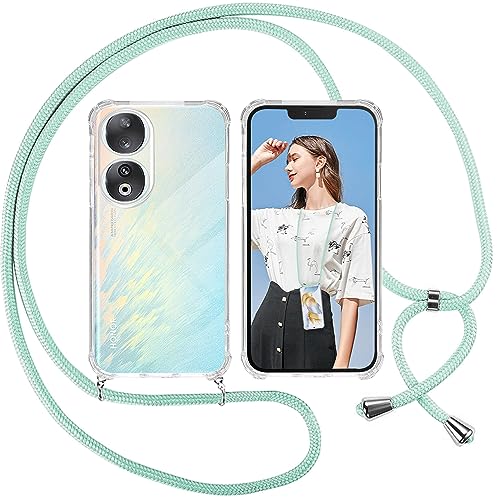 ISOI Cover con Cordino per Honor 90, Custodia Trasparente con Collana Tracolla Laccio Collo Ultra Sottile Morbido TPU Silicone Antiurto AntiGraffio Antiscivolo Case, Verde