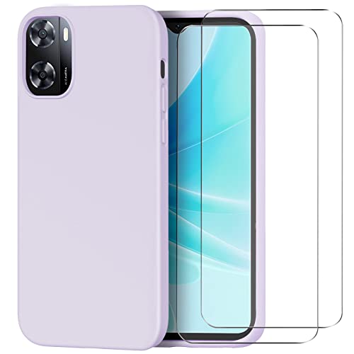 ISOI Cover per OPPO A57 4G/OPPO A77 4G/OPPO A77s Silicone 6.56 Pollici, con 2 Pellicola Vetro Temperato, Morbido Silicone Liquido Protezione, Antiurto Ultra-Sottile Protezione Custodia - Viola